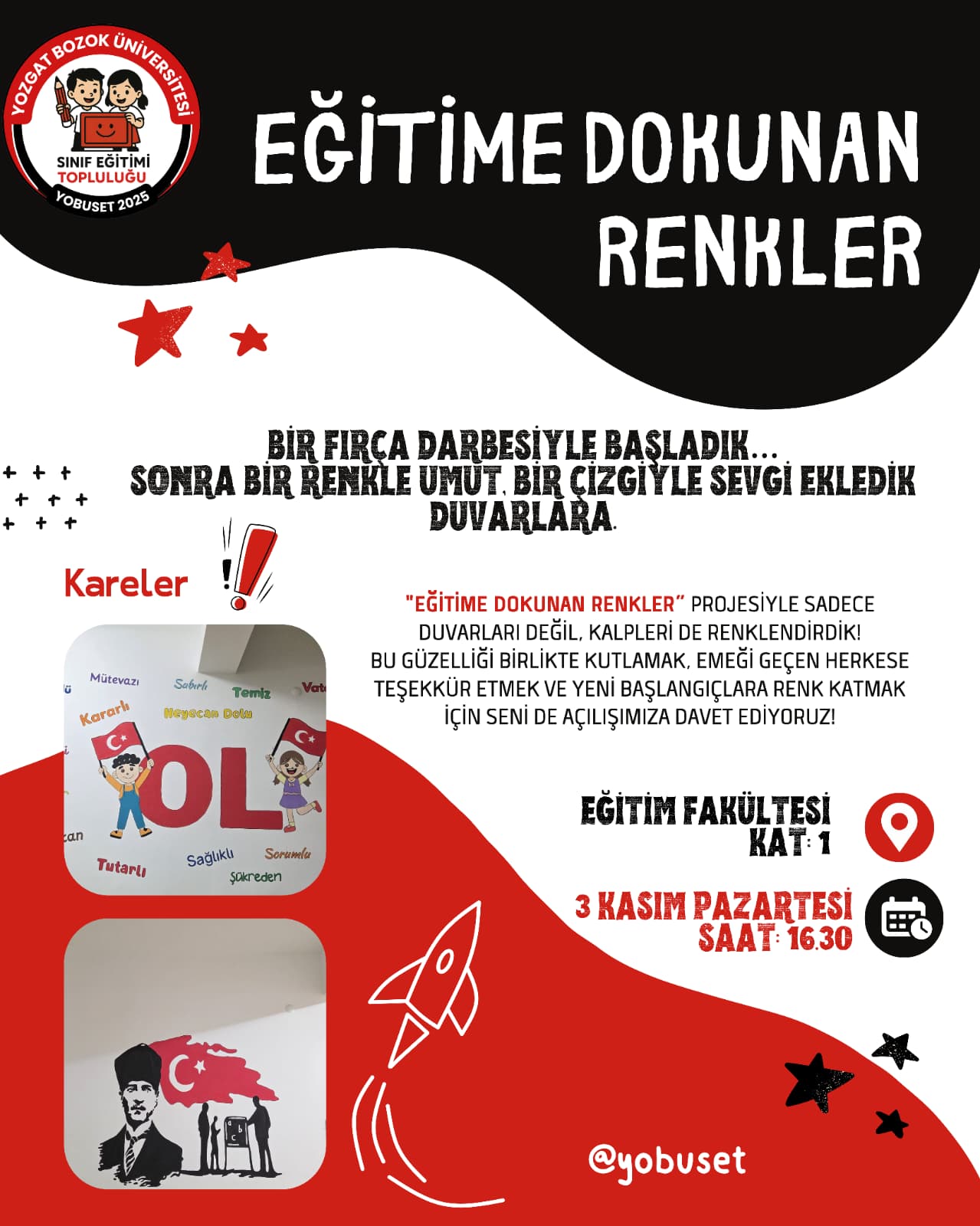 Yozgat Bozok Üniversitesi Sınıf Eğitimi Topluluğu (YOBÜSET 2025) olarak, büyük bir heyecanla başlattığımız projemizin açılışını yapıyoruz! 🎉